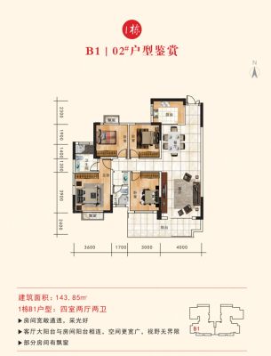 户型齐全,主打大面宽阳台,双卧朝南四居