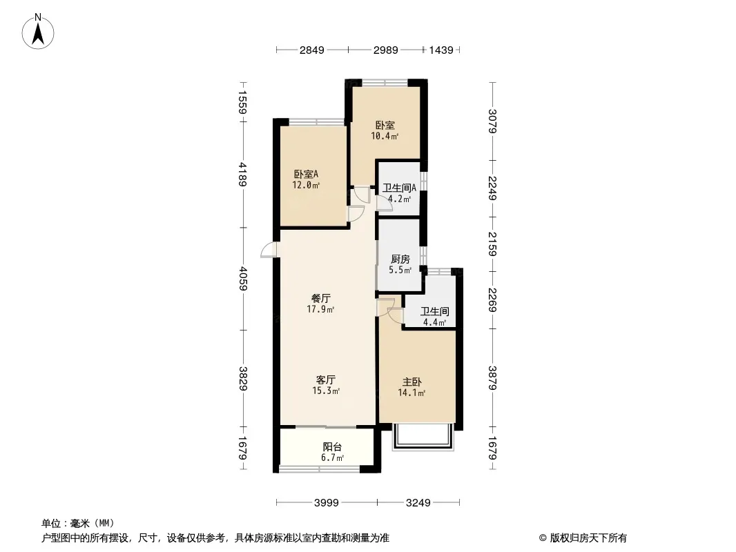 精装三房,东边户 朝南户型,通风采光好