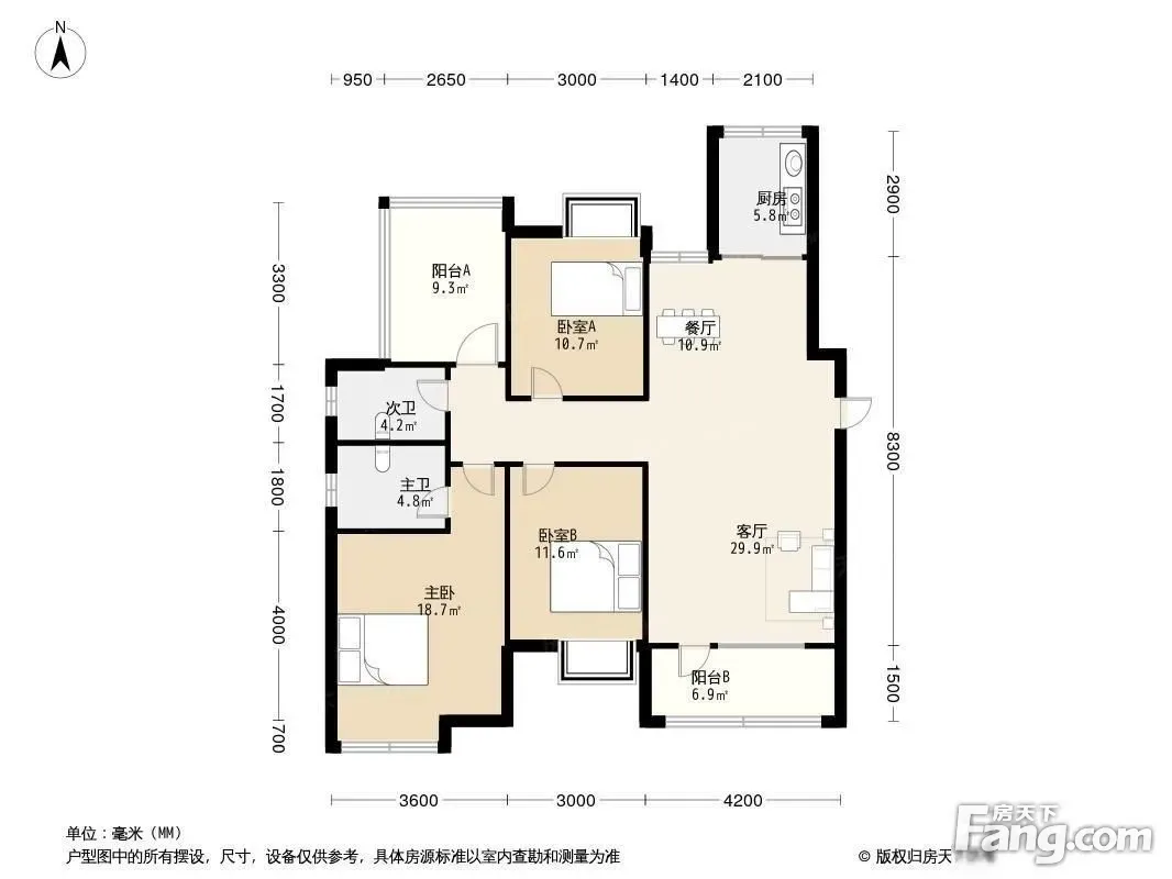 户型齐全,主打主卧朝南,主卧带卫四居