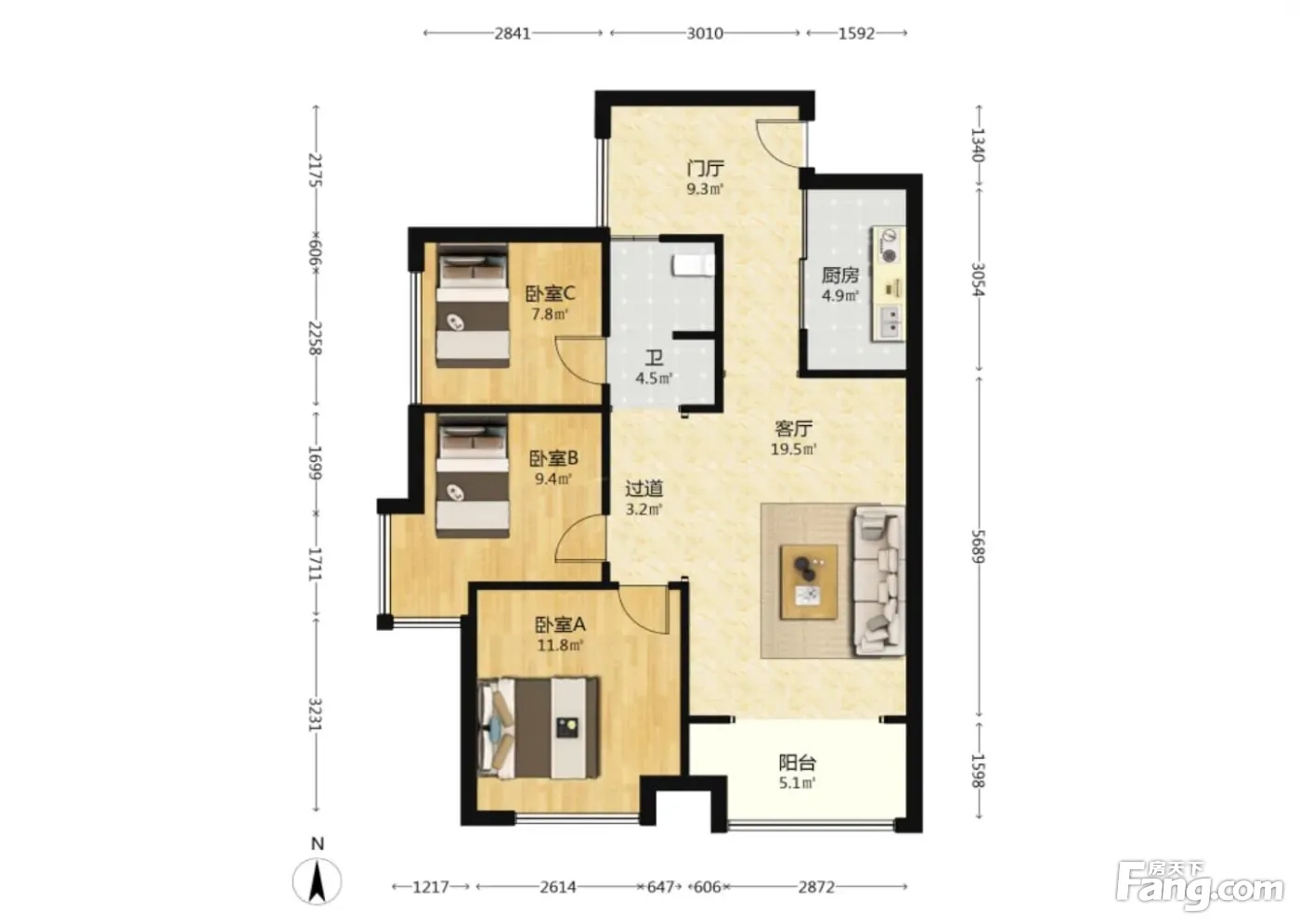 3室2厅1卫