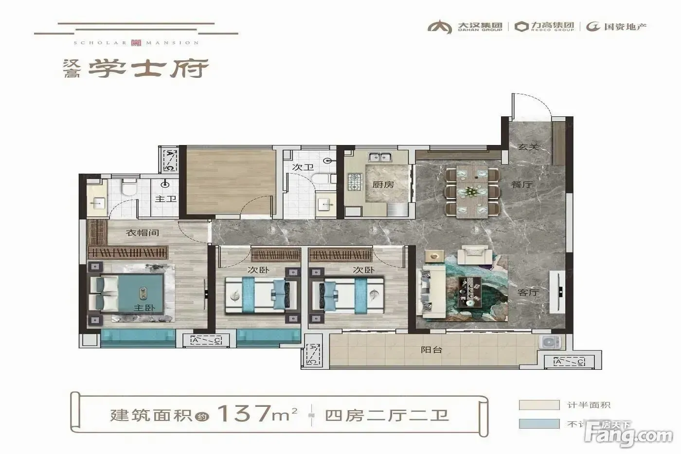 汉高学士府户型主要有123平-137平的全明格局,户型方正的四居 、135平-135平的南北通透,动静分离的五居 、103平-103平的全明格局,户型方正的三居 。