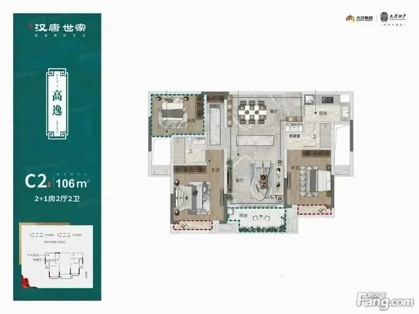 汉唐世家户型主要有97平-114平的主卧朝南,主卧带卫的三居 、121平-134平的主卧朝南,主卧带卫的五居 、128平-135平的南北通透,双阳台的四居 。