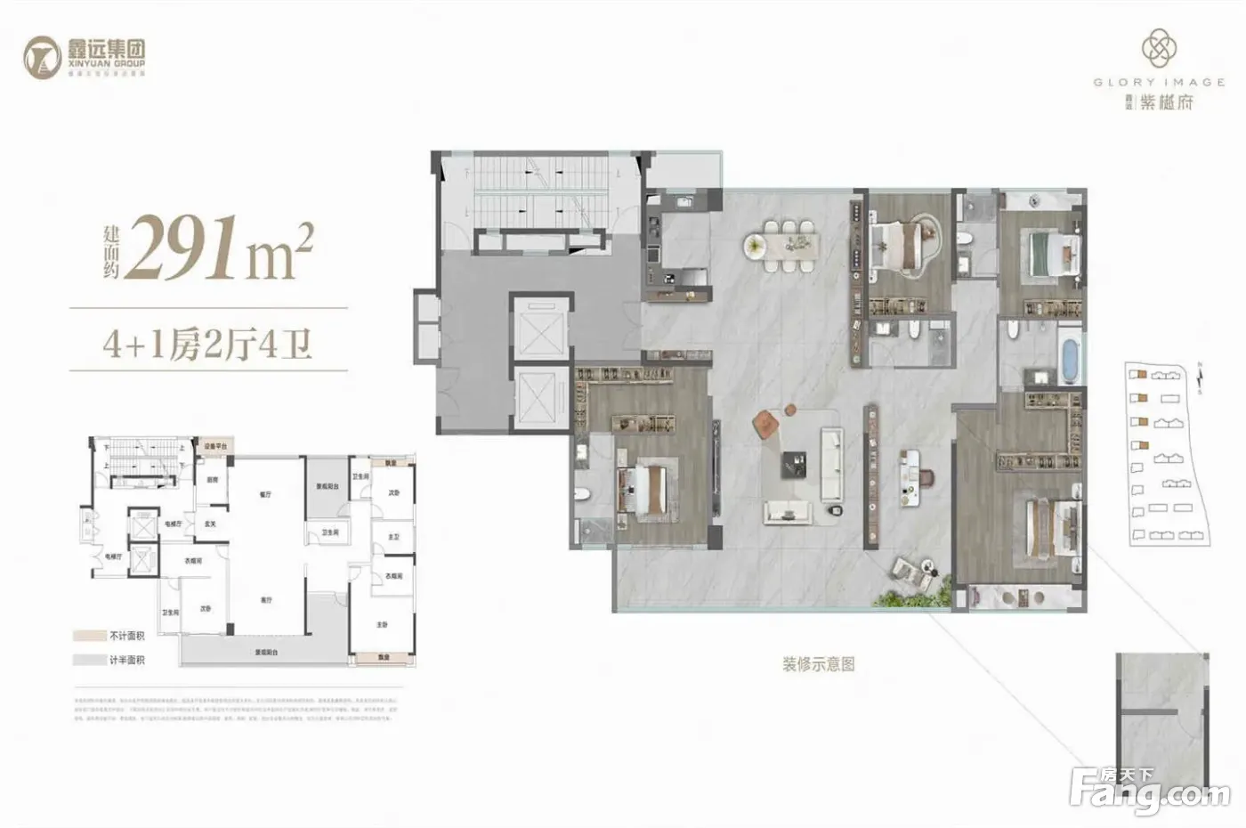 鑫远·紫樾府户型主要有280平-295平的全明格局,南北通透,户型方正,双卧朝南,三开间朝南,观景落地窗的五居 、180平-225平的南北通透,双卧朝南,观景飘窗的四居 。