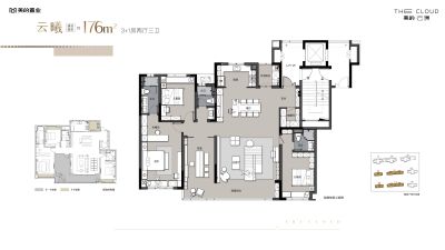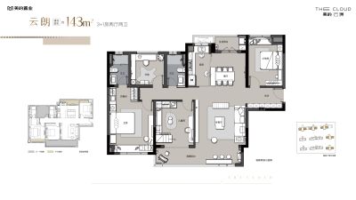 美的·云璟户型主要有143平-176平的三开间朝南,大面宽阳台的四居 、117平-117平的三开间朝南,卧室带阳台的三居 。