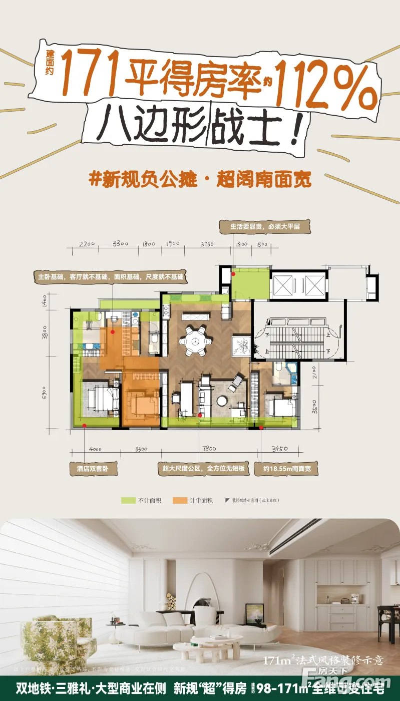 高铁南会展中心双地铁 零公摊 大平层 私梯入户 小高层