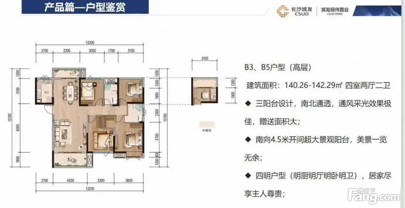 城发恒伟·北城首府户型主要有120平-162平的主卧带卫,卧室带阳台的四居 、106平-123平的南北通透,全明格局的三居 。