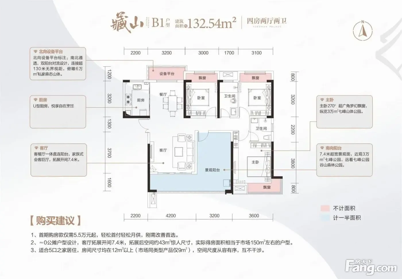 润和悦山府户型主要有122平-132平的大面宽阳台,南北通透的四居 、143平-143平的卧室带阳台,大面宽阳台的五居 。