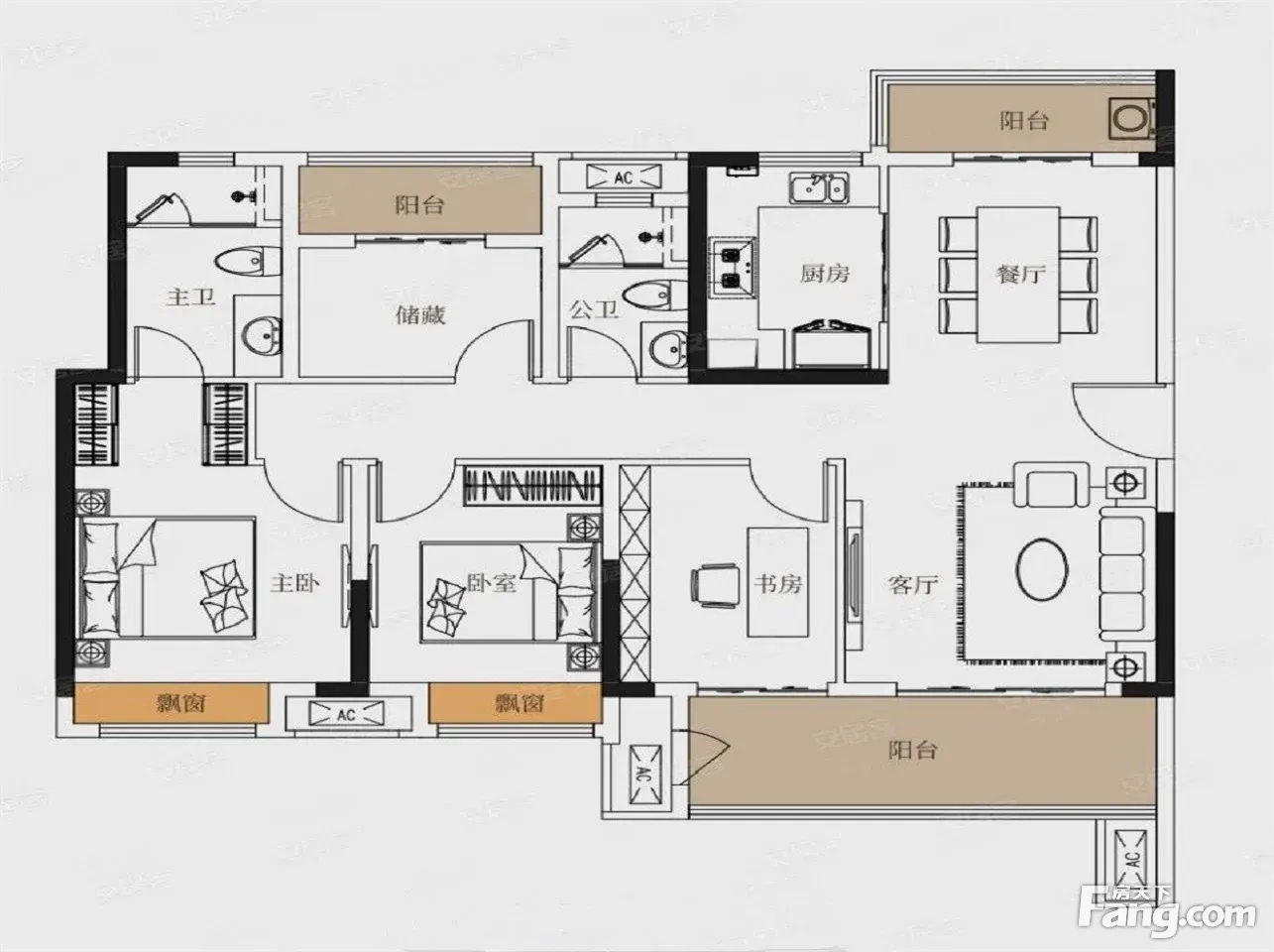 户型齐全,主打全明格局,户型方正三居
