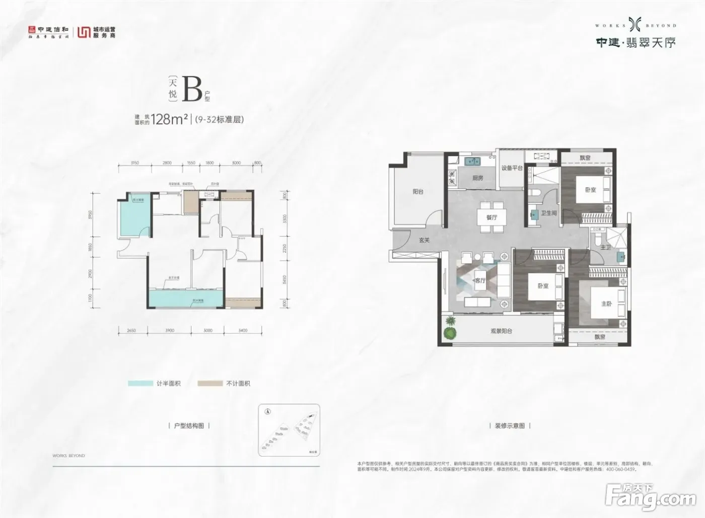 中建翡翠天序户型主要有128平-185平的全明格局,户型方正的四居 、185平-230平的观景落地窗,双卧朝南,三开间朝南,卧室朝南的五居 、110平-110平的双卧朝南,三开间朝南的三居 。