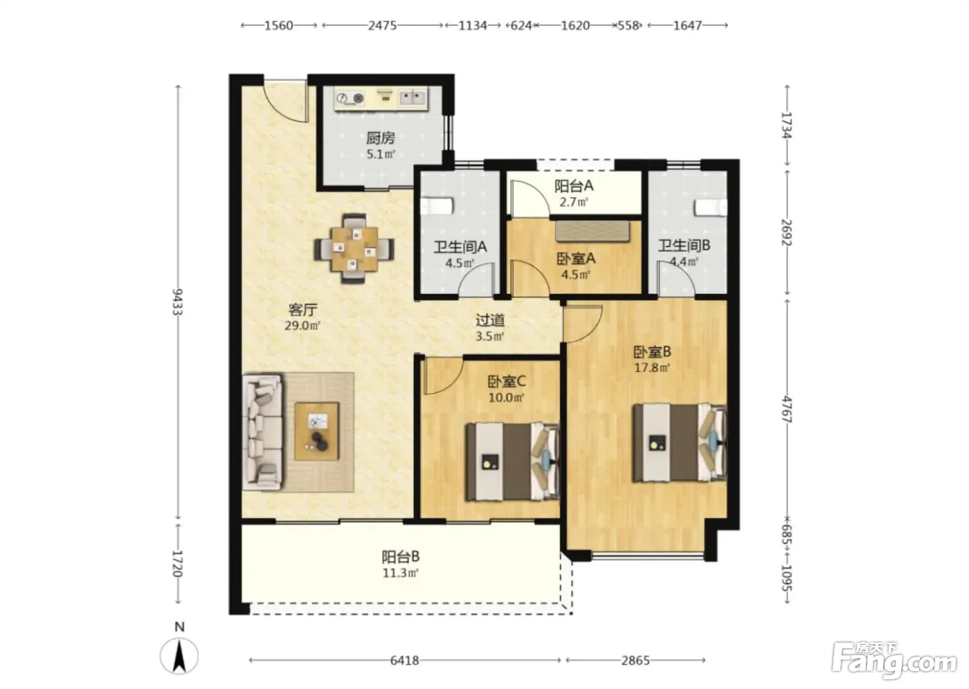3室2厅1卫