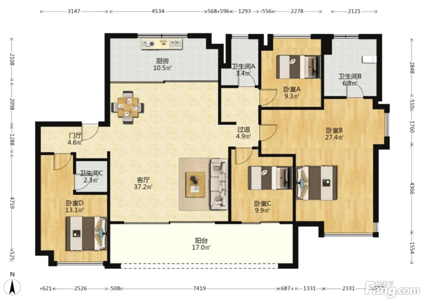 户型齐全,主打南北通透,全明格局四居