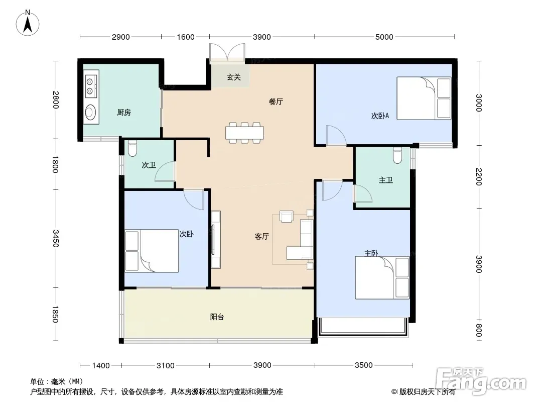 户型齐全,主打卧室带阳台,双卧朝南,大面宽阳台四居