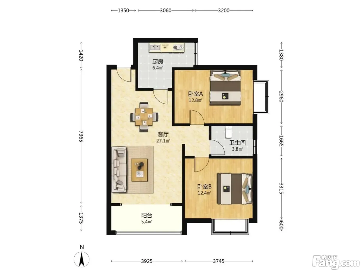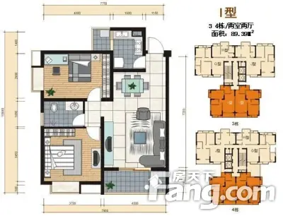 户型齐全,主打户型方正,明卫,明厨,主卧朝南二居