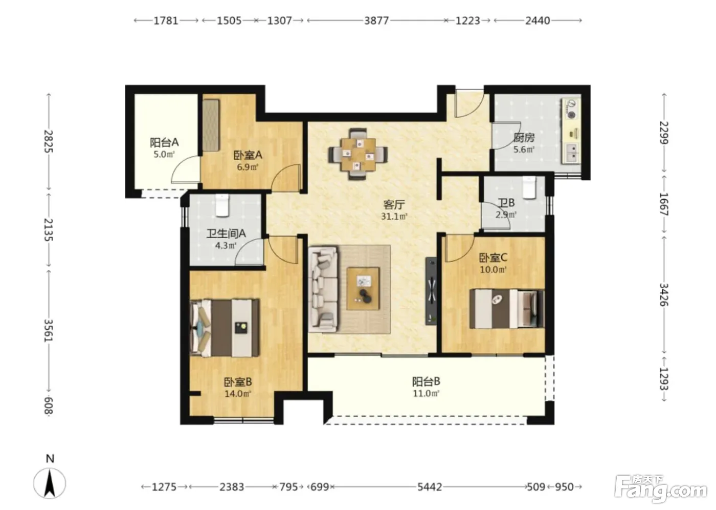 3室2厅1卫