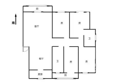 户型齐全,主打明卫,明厨,客厅朝南,双卧朝南,主卧朝南三居