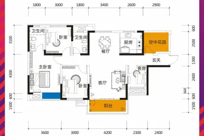户型齐全,主打户型方正,动静分离三居