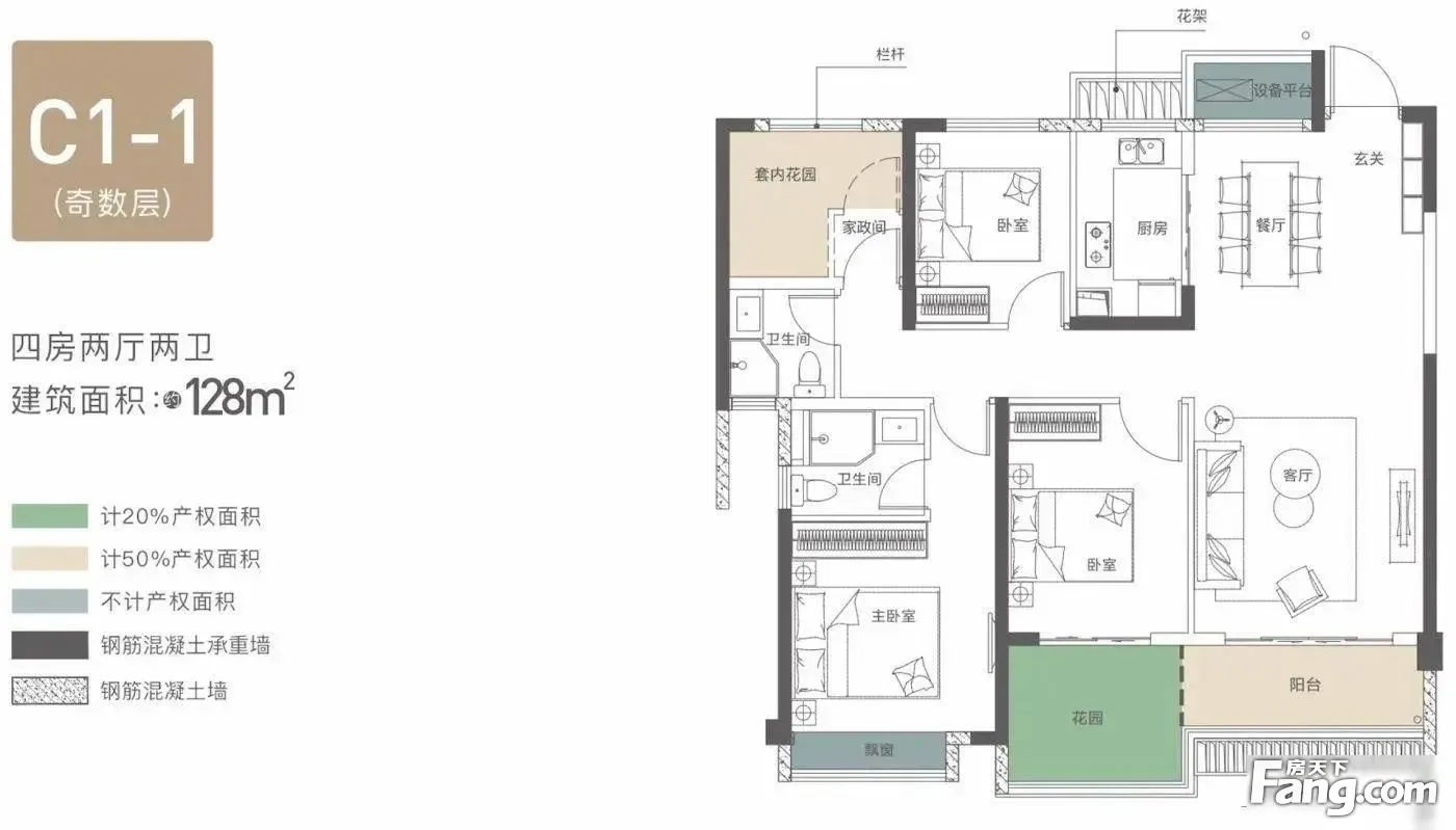 保利和光尘樾户型主要有117平-189平的全明格局,户型方正的四居 、108平-108平的全明格局,户型方正的三居 。