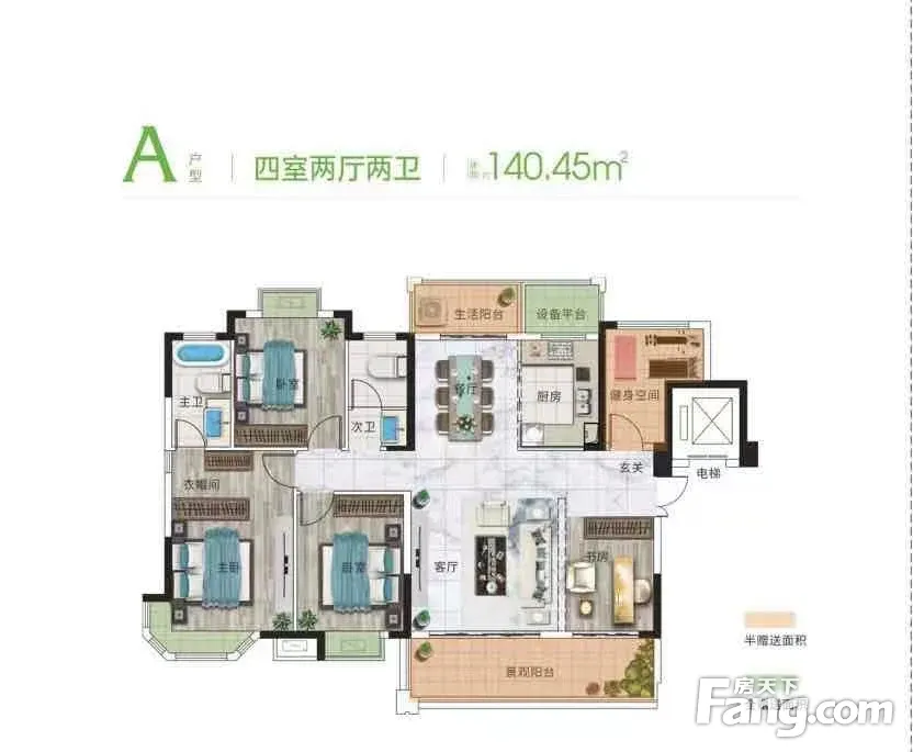 高铁西 毛坯140平大四房 大阳台 送超大入户花园 得房率高