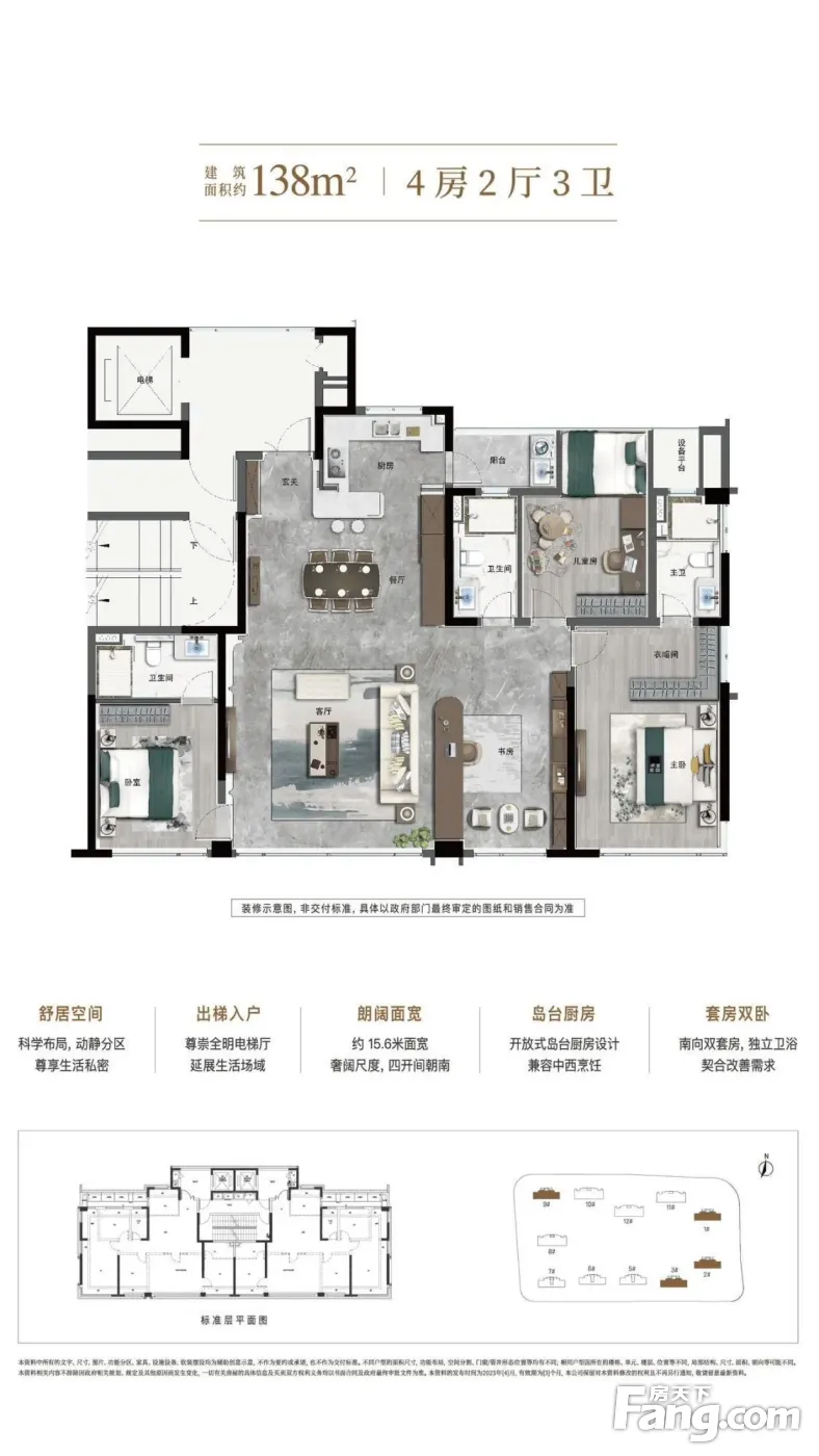 市府新规0公摊,得房率120%!双书包实验二小、南雅!毛坯大四房、大五房,4号线、8号线、10号线!品质楼盘滨江CBD·封藏大平层! 1、近4、8、10号线、有轨电车,多趟公交; 2、商业:招商花园城、麦德龙商场、24品生活中心、凯德壹中心等,繁华主脉; 3、区域已有430家金融机构、企业总部进驻,长沙银行、民生银行等在此,金融高精尖人群不断涌入; 4、紧邻八方公园、湘江黄金风光带、谷山公园、4A文旅月亮岛; 5、学校:长沙市实验二小、南雅; 6、毛坯面积:133㎡、138㎡、170㎡大四/五房; 7、锦海棠在产品营造上,运用海派现代技艺技法,步步生锦,打造六重归家礼遇;围合式布局景观,两轴三芯十大主题,打造全龄化景观园林; 8、绿城社区美好生活场景,邻里节、海豚计划、红叶行动、寻年味,让全龄段业主在一年四季中体验”乐在四时“的园区活动! ( 图片为样版间,交付为毛坯 )