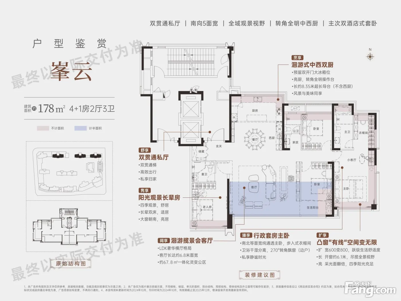 湘江新区高端大平层!中式园式,毛坯大四房、五房,品质楼盘!上麓山南雅九年制!滨江CBD·封藏大平层!立序湖湘 境献湘江掌舵人! 1、近4号线及规划中8号线等; 2、商业:凯德壹中心、24品、王府井、渔人码头、山姆会员店、万象城、奥克斯广场等10多个大型商城环绕,尽享一站式配套。; 3、区域各类金融机构及相关企业1184家,包括长沙、平安、农业等银行总部,开源证券、东北证券、五矿证券等进驻。拥有六大甲级写字楼及国际酒店:楷林国际、湘江IFC、绿地中央广场、万豪、希尔顿、湘江豪生等; 4、紧邻湘江黄金风光带、谷山公园、4A文旅月亮岛; 5、麓山二小、南雅等优质教育; 6、毛坯,面积:146㎡、150㎡、167㎡、178㎡四/五房; 7、新中式园林,“穿林屿、尘光庭、云梦园、出云渡、曲水苑”5大主题交互园林,融汇大中庭园林、全龄儿童区、运动热身区、林荫广场、健身跑道等功能空间。 8、市府滨江、政教核芯、峯云藏品!湘江新区高端大平层!! ( 图片为样版间,交付为毛坯 )