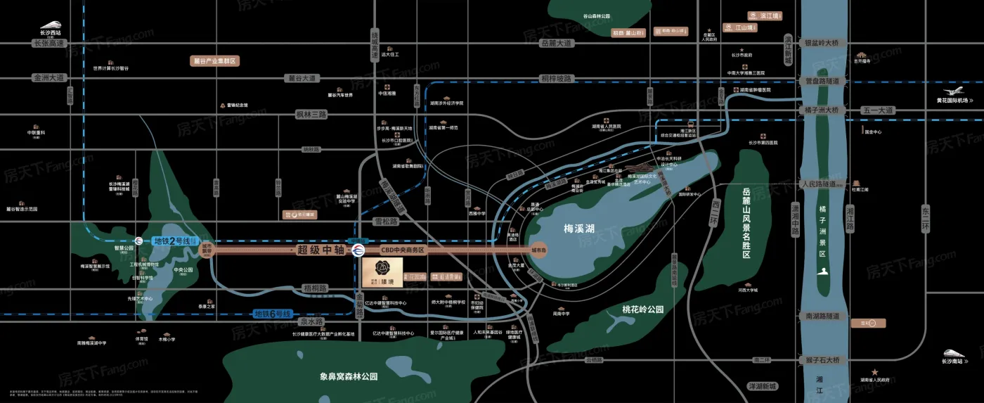 【交通枢纽,同步世界效率】 立踞地铁1号线、6号线交汇处文昌阁地铁站,紧邻黄兴北路、历史老街湘春路、湘江中路及营盘路隧道等两纵两横交通路网,从城市中心快捷通达全城。 【商圈荟萃,链接超级流量】 直线距离约1公里即抵长沙老城传统商业中心五一商圈,IFS国金中心、新世界百货、王府井百货、平和堂百货、酒吧街、黄兴北路步行街等高端生活业态扎堆聚集。 【产业蓬勃,峰聚尖端领袖】 链接黄兴北路中央商务区、芙蓉路金融生态区两大商务引擎,荟萃城市顶层商业精英,共享产业集核效应。