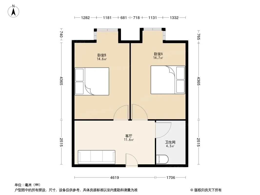 户型齐全,主打户型方正,明卫,明厨,主卧朝南二居
