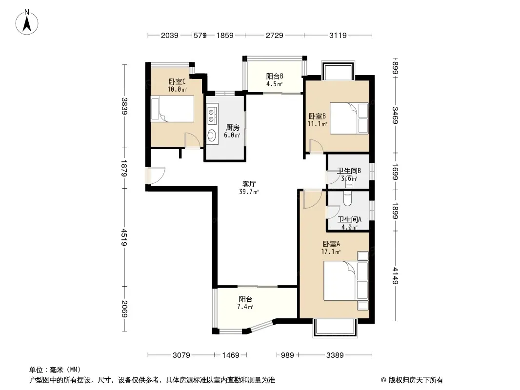 户型齐全,主打客厅朝南,主卧朝南三居