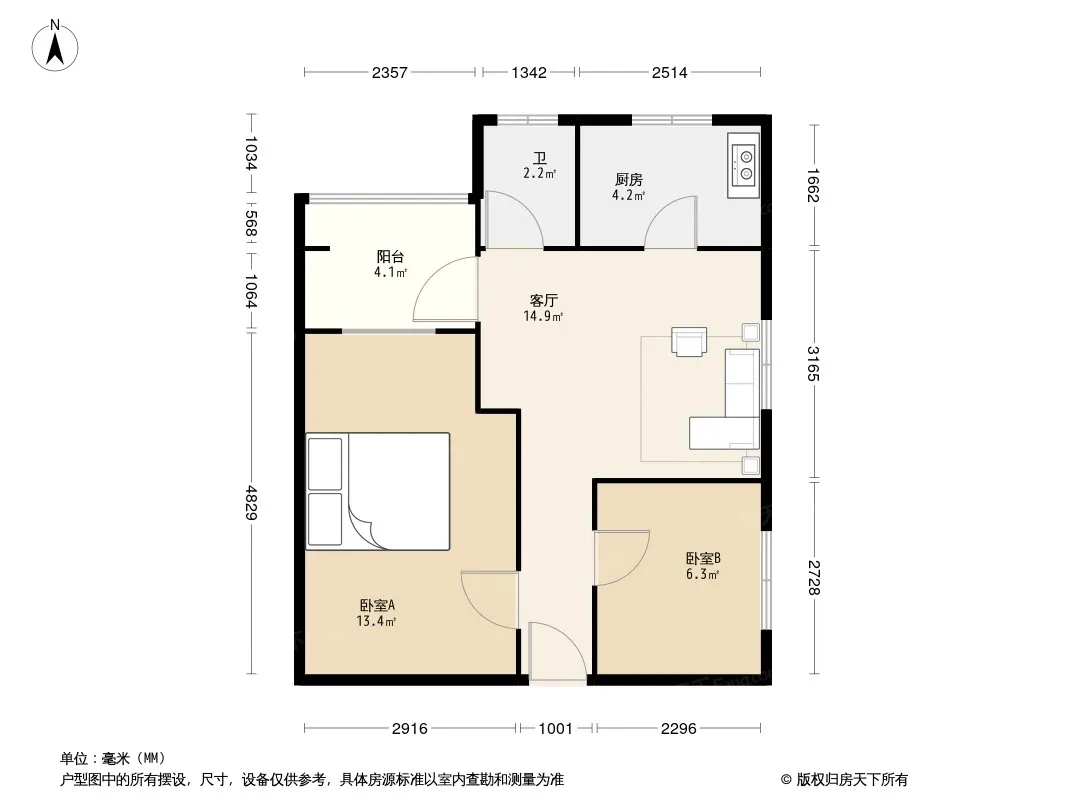 户型齐全,主打户型方正,明卫,明厨,双卧朝南二居