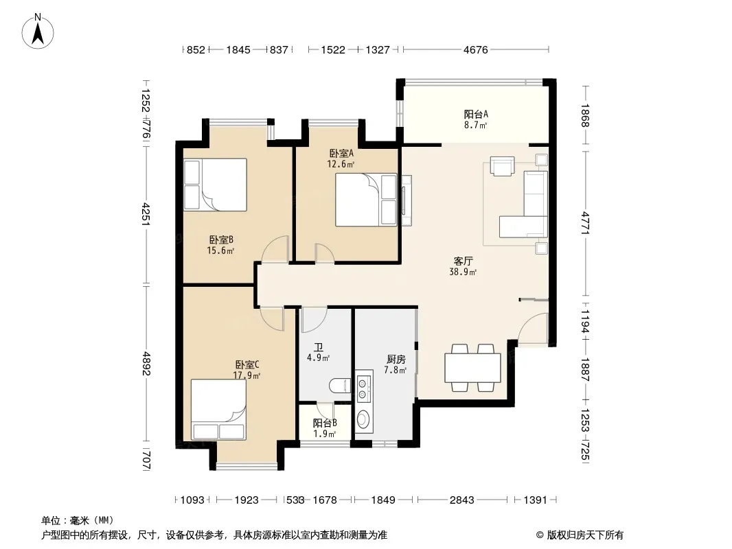 户型齐全,主打户型方正,明卫,独立衣帽间,明厨,双阳台三居