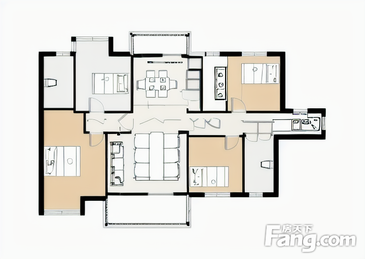 户型齐全,主打全明格局,户型方正,主卧带卫,大面宽阳台四居