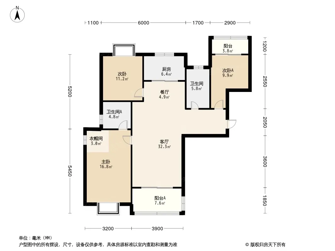 户型齐全,主打户型方正,主卧朝南,明厨明卫三居
