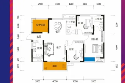 户型齐全,主打户型方正,动静分离三居
