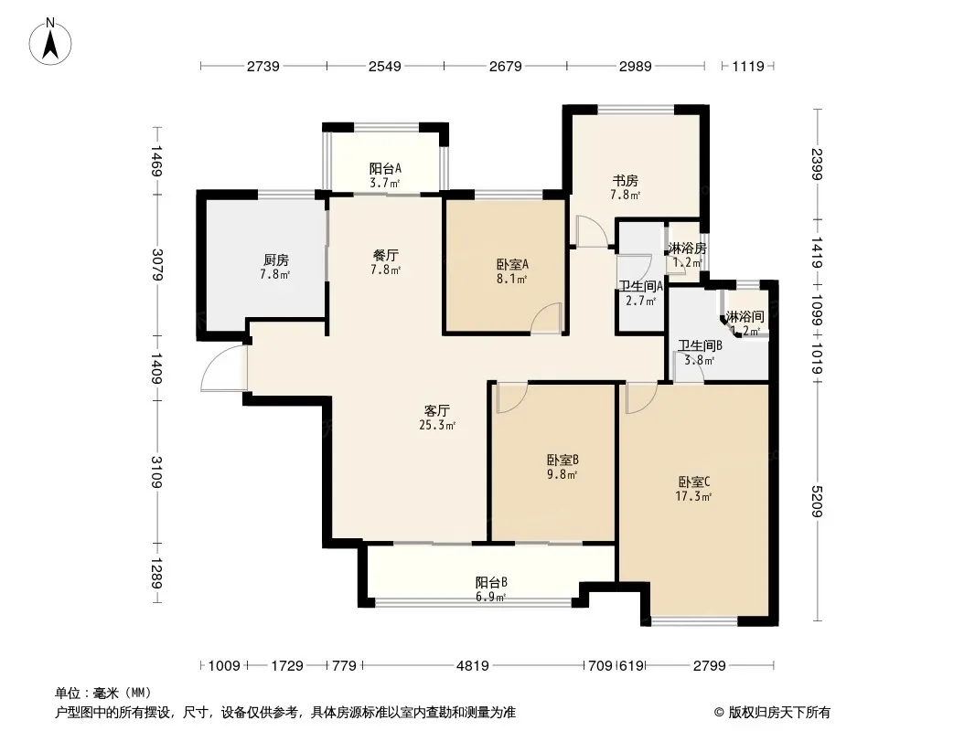户型齐全,主打南北通透,户型方正,动静分离四居