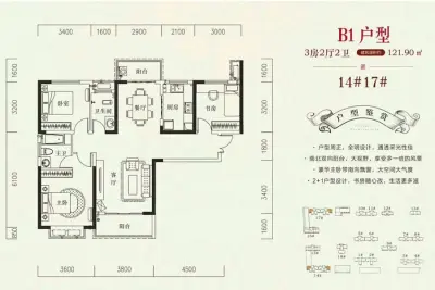 户型齐全,主打户型方正,主卧带卫,双阳台三居