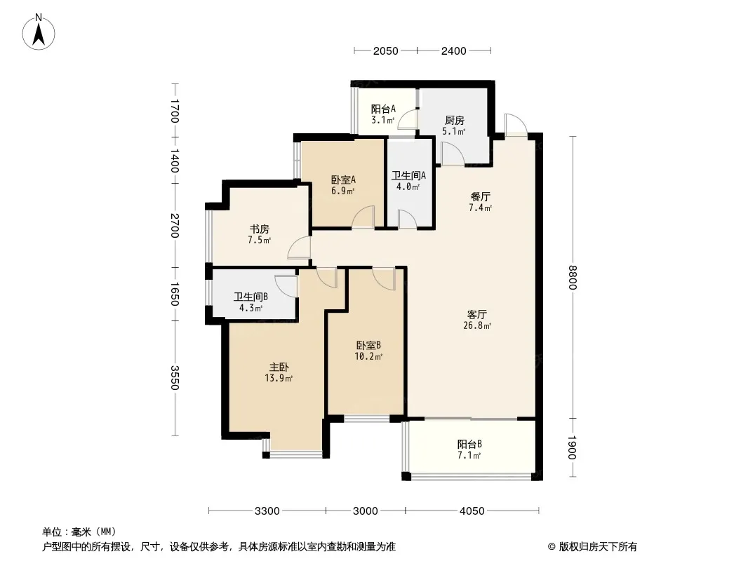 万润·滨江天著 4室1厅 南