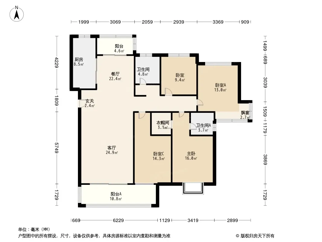 户型齐全,主打南北通透,双阳台三居