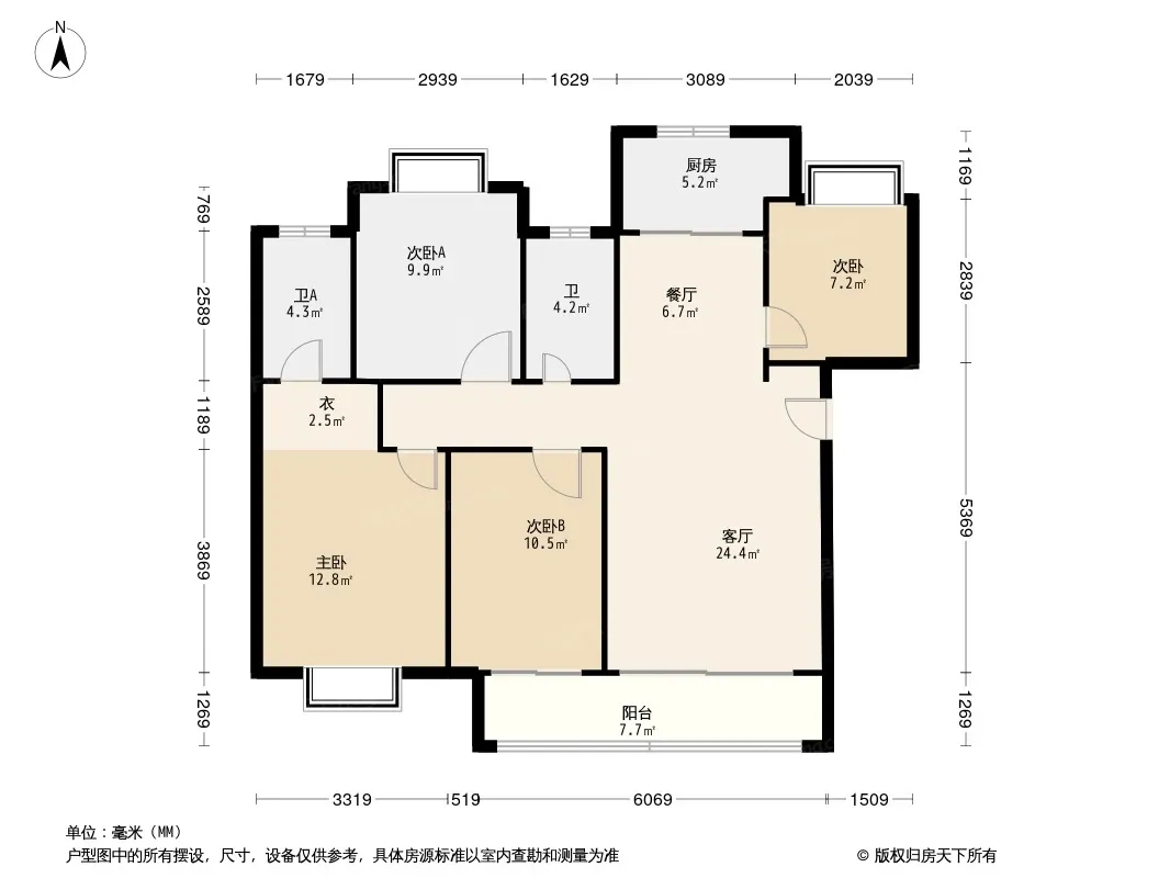 东原麓印长江 4室2厅 南 北