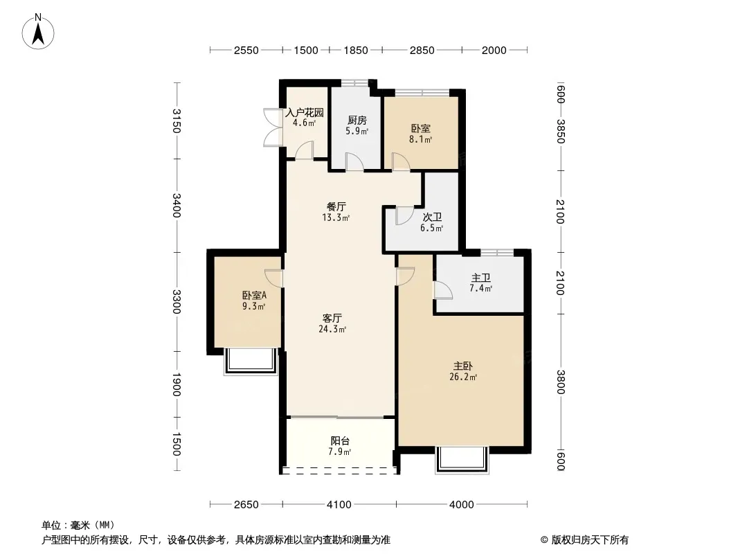 户型齐全,主打主卧朝南,卧室带阳台三居