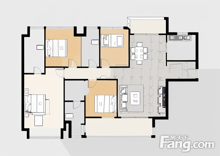 户型齐全,主打主卧朝南,主卧带卫三居