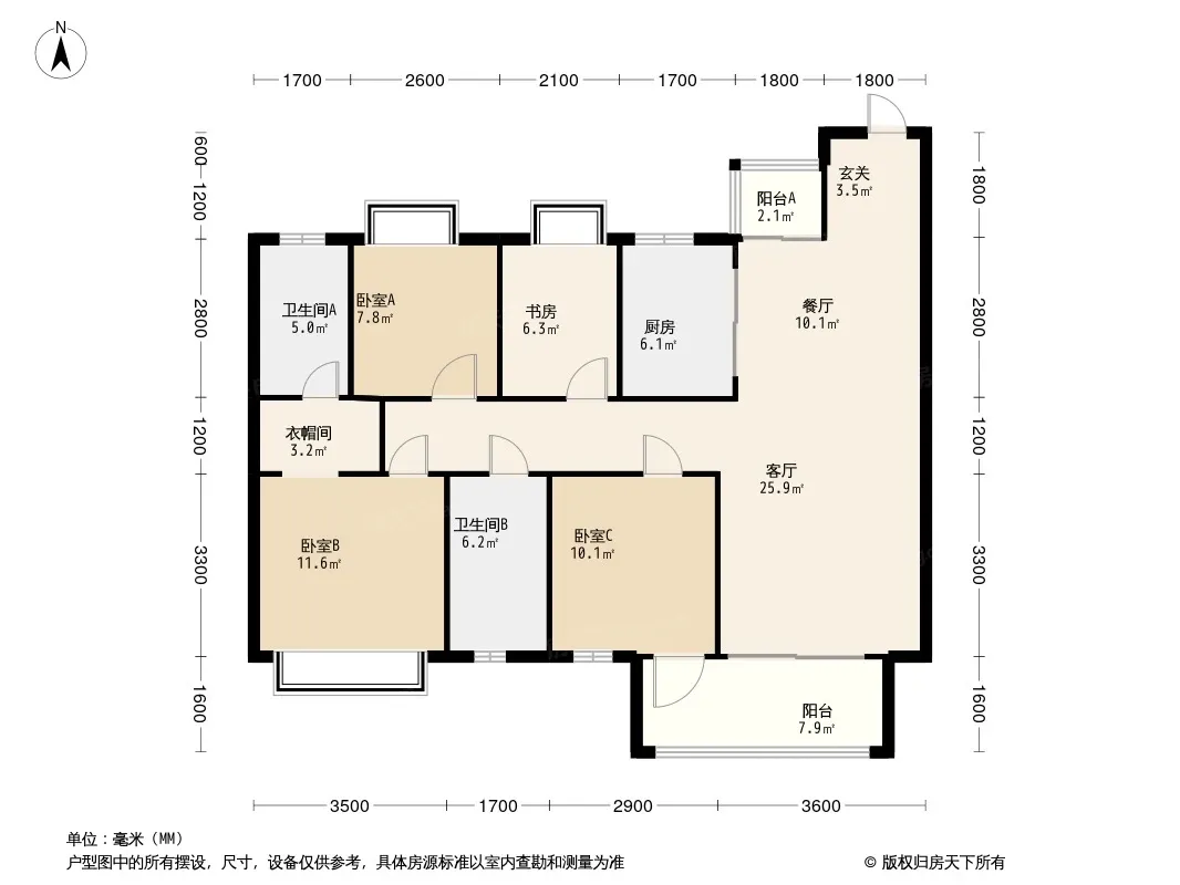 户型齐全,主打主卧朝南,主卧带卫,带衣帽间四居