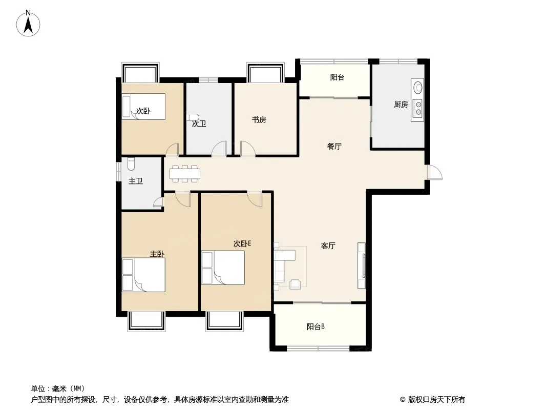 户型齐全,主打南北通透,双阳台四居