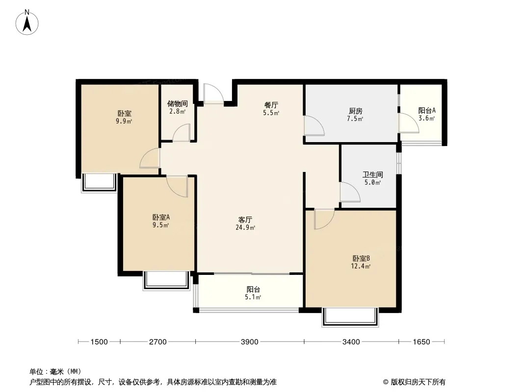 户型齐全,主打户型方正,主卧朝南三居