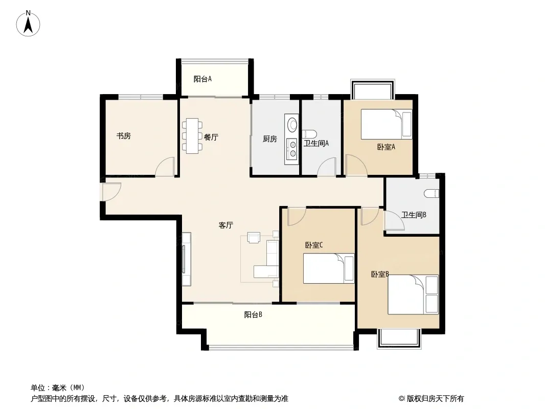 户型齐全,主打南北通透,全明格局四居