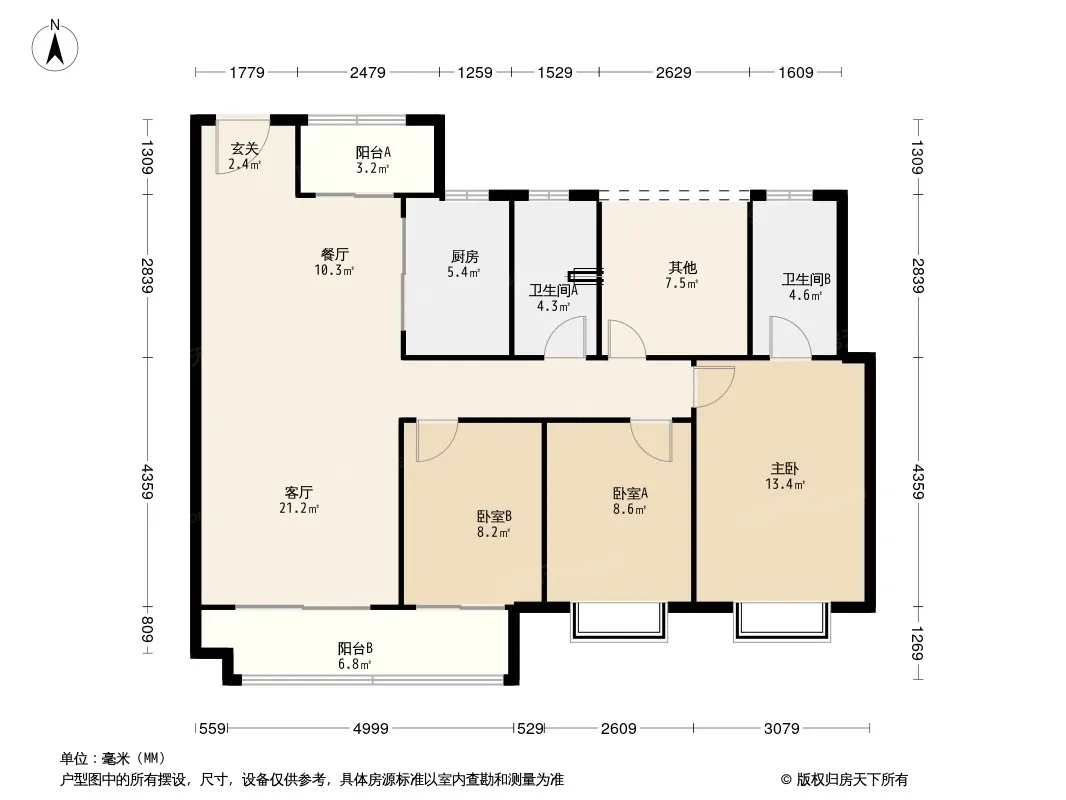 户型齐全,主打南北通透,全明格局三居
