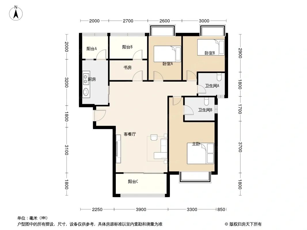 户型齐全,主打全明格局,户型方正三居