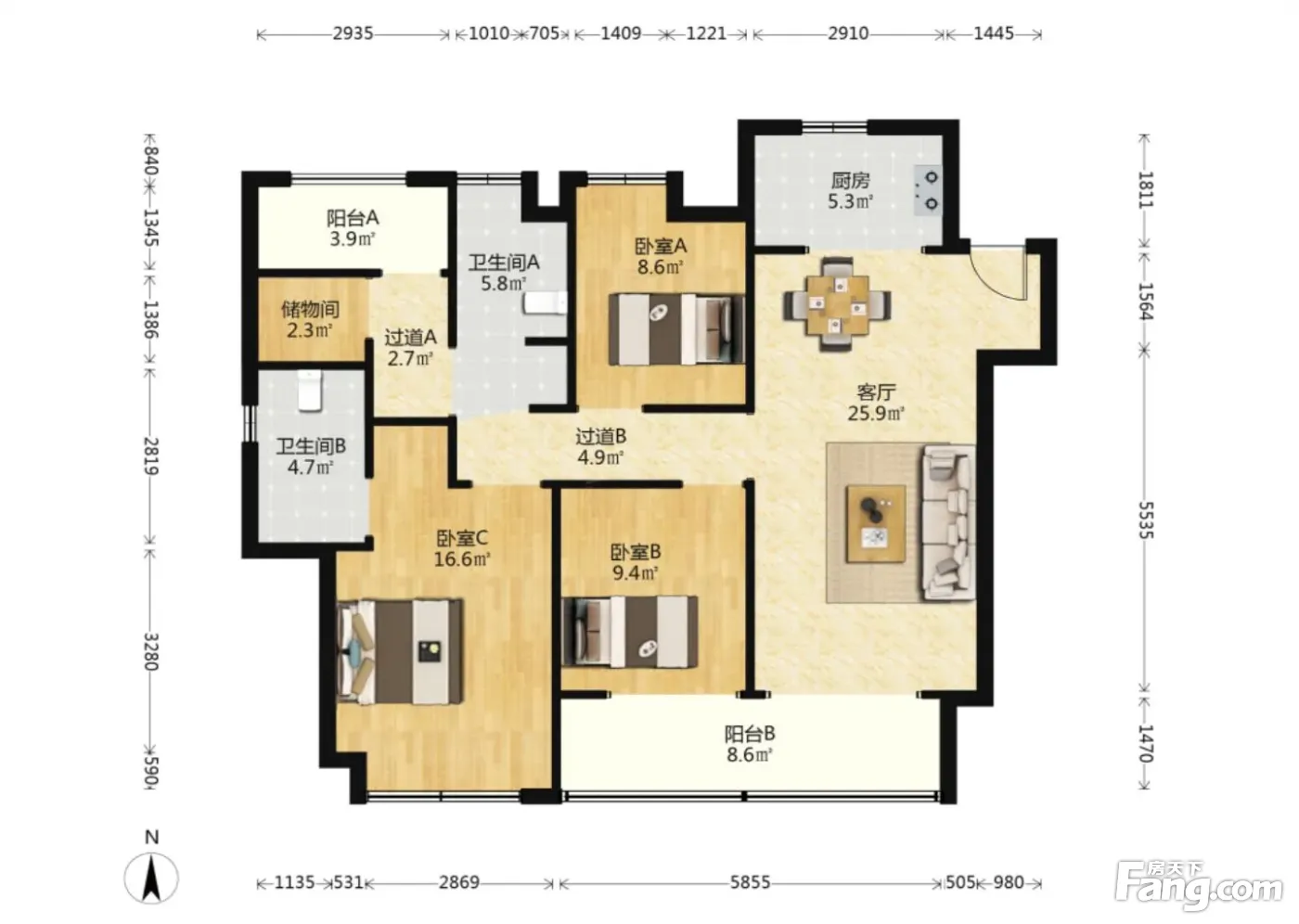 户型齐全,主打全明格局,户型方正四居
