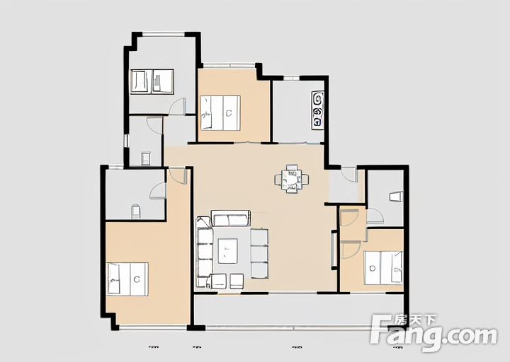 户型齐全,主打卧室带阳台,双卧朝南,独立衣帽间五居