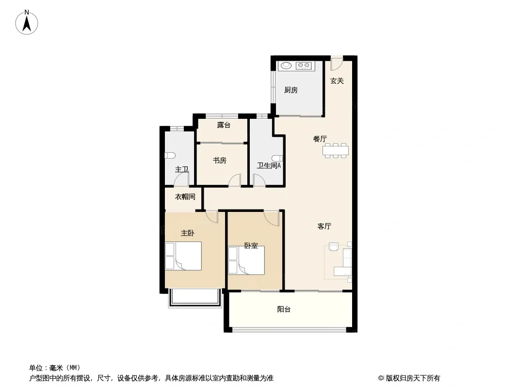 户型齐全,主打南北通透,全明格局,户型方正,客厅朝南,独立玄关,带衣帽间,开放厨房,双阳台四居