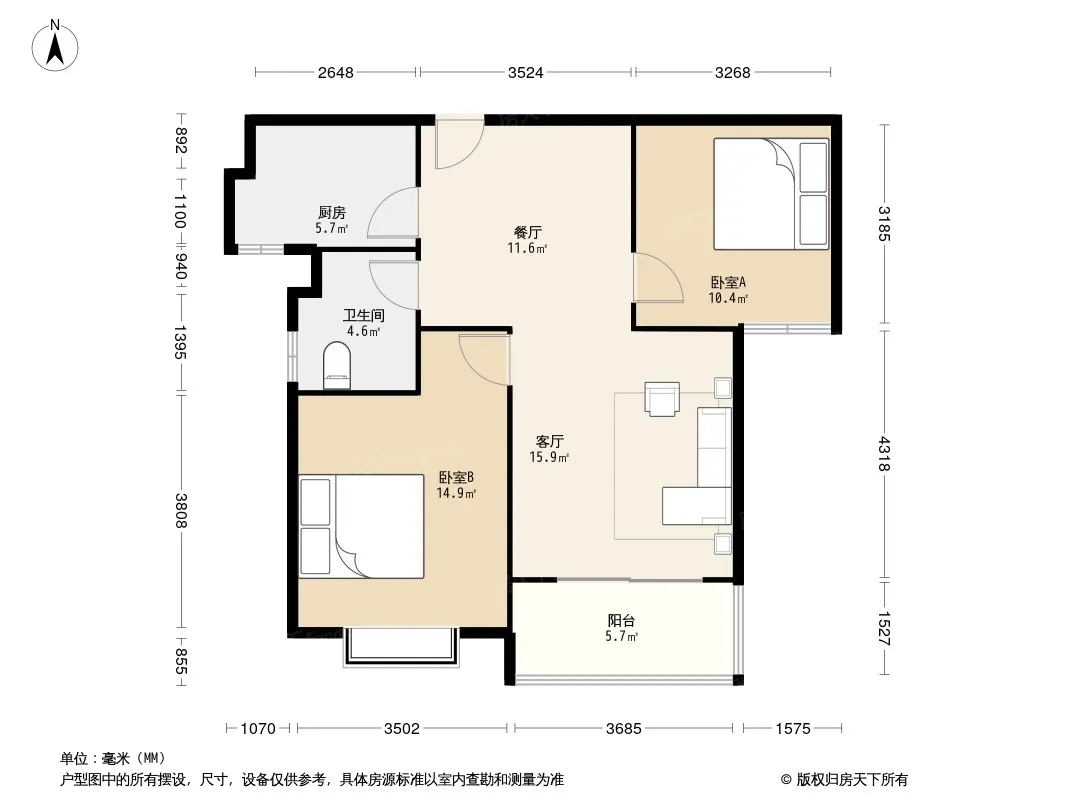 户型齐全,主打户型方正,明卫,双阳台,主卧朝南三居