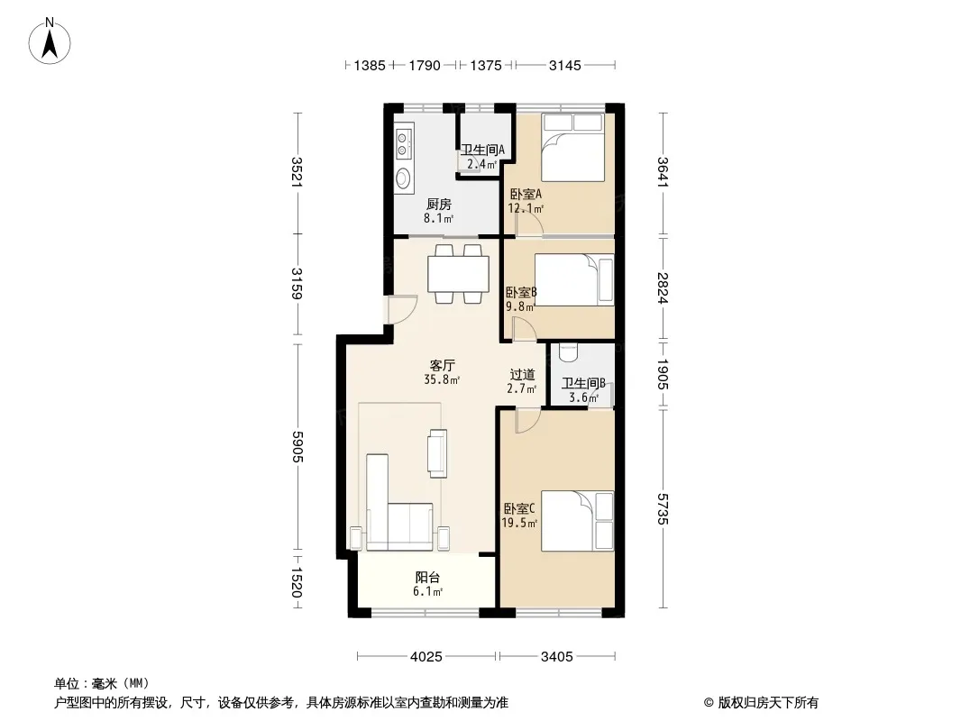 户型齐全,主打户型方正,明厨,明卫,客厅朝南,主卧朝南三居